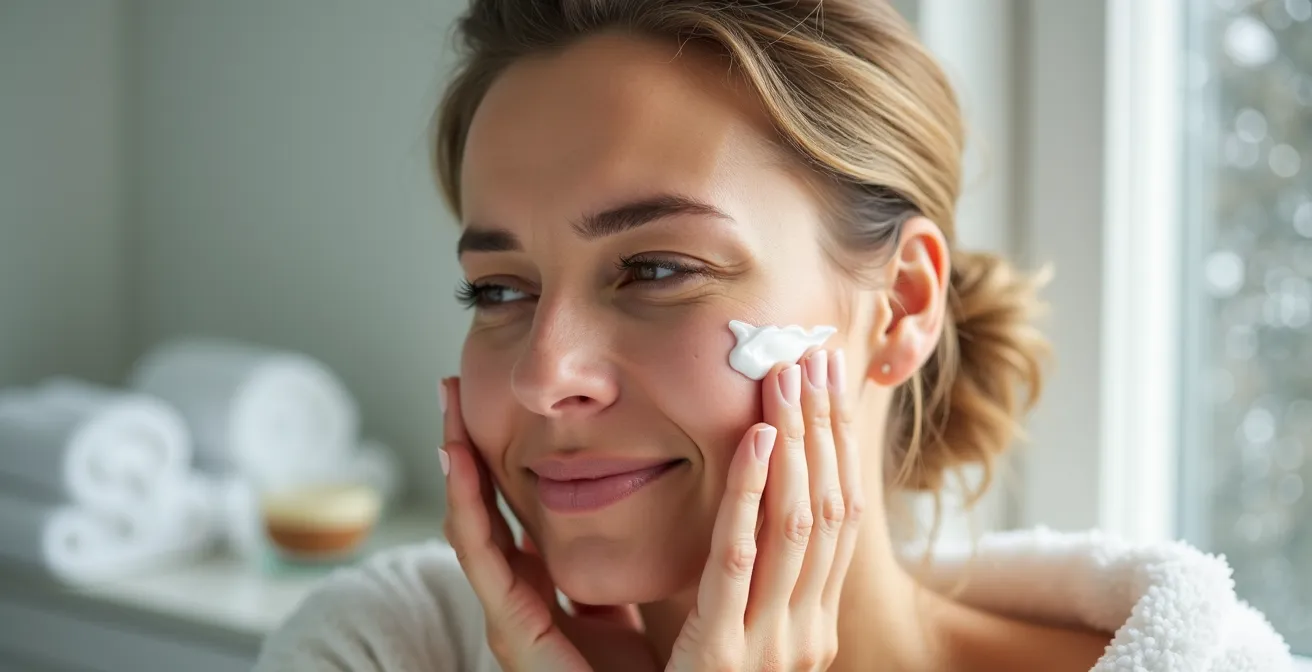 - Adaptation des textures : Optez systématiquement pour des textures plus riches. Votre crème de jour doit être plus épaisse et votre nettoyant plus crémeux. C’est un changement non négociable pour l’hiver.